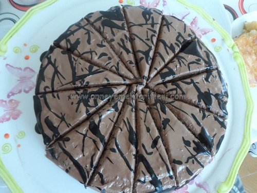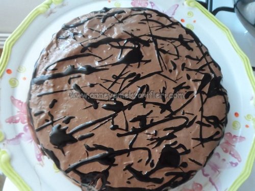 Şimdi paketin üzerindeki tarife uyarak çikolata sosunu hazırlayın. Sonra da bunu kekin üzerine dökün. Her tarafına eşit olarak dağılsın.