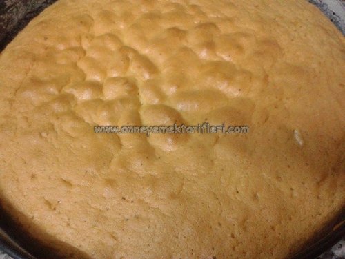 Şimdi yuvarlak bir kalıbın içini birazcık yağlayın ve hamuru içine dökün. Bu arada fırını yakın ve ısısını 180 dereceye ayarlayın. Fırın kızınca da kalıbı içine koyun. Pandispanya kabarmaya başlamadan fırının kapağını açmamanız gerekiyor. Aksi halde kabarmış bir kek elde edemezsiniz. Pandispanyayı fırından çıkarmadan önce klasik yöntemle yani kürdan batırarak kekin pişip pişmediğini kontrol edin.