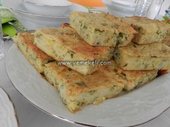 Pişen patatesli keki fırından çıkarın ve biraz ılıdığında keskin bir bıçakla kare kare dilimleyip servis edin. Afiyet olsun.