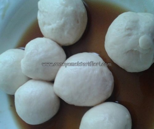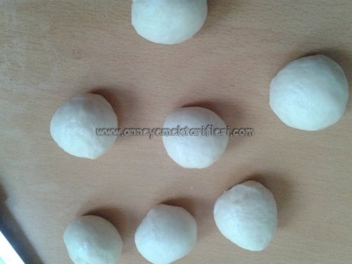 Şimdi hamur kıvamını bulunca bundan küçük parçalar koparıp elinizde yuvarlayın. Daha sonra pekmezli suya batırın Sonra da susam veya çörek otuna bulayarak bir fırın tepsisine dizin. Fırın tepsisinin içine bir yağlı kağıt konursa, poğaçaların tepsiye yapışmaması için iyi olur.