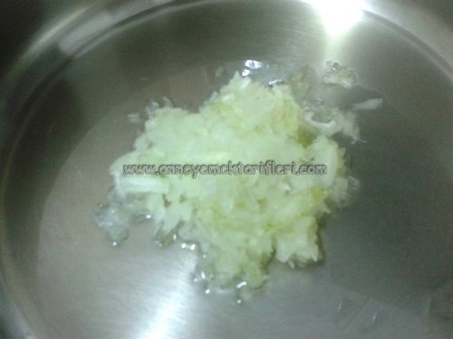 Yemeğimiz olan yaprak sarmaya başlarken önce soğanı rendeleyelim veya yemeklik bir şekilde doğrayalım ufak olacak şekilde ardından yağı tencereye alıp soğanlarıda ilave edip kavurmaya başlayalım.Kavrulan soğana salçamızı ekleyerek kokusu çıkana dek kavuralım.